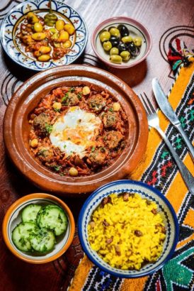Tagine Street Food Bar, nowe miejsce z kuchnią marokańską otworzyło się we wtorek przy ulicy Oboźnej w miejscu zamkniętego Sueno Tapas Bar. To nowy lokal właścicieli popularnych koreańskich restauracji Miss Kimchi i KoreaTown. Dania serwowane w Tagine podawane są w typowych marokańskich glinianych naczyniach zwanych „tagine”.  W krótkim menu znajdziemy wołowinę z morelami, kurczaka w sosie pomidorowo-paprykowym, kefty wołowo-jagnięce w sosie pomidorowym czy kalafior w sosie pomidorowym. Zjemy tu także kotleciki jagnięce i zupę z wołowiną, soczewicą, ciecierzycą i kulkami mięsnymi. Każde danie serwowane jest z zestawem dodatków takich jak zaaluk, hummus, ciecierzyca z kolendrą, fasola z kuminem, duszona soczewica, ogórki z miętą, kuskus, ryż z kurkumą i inne.