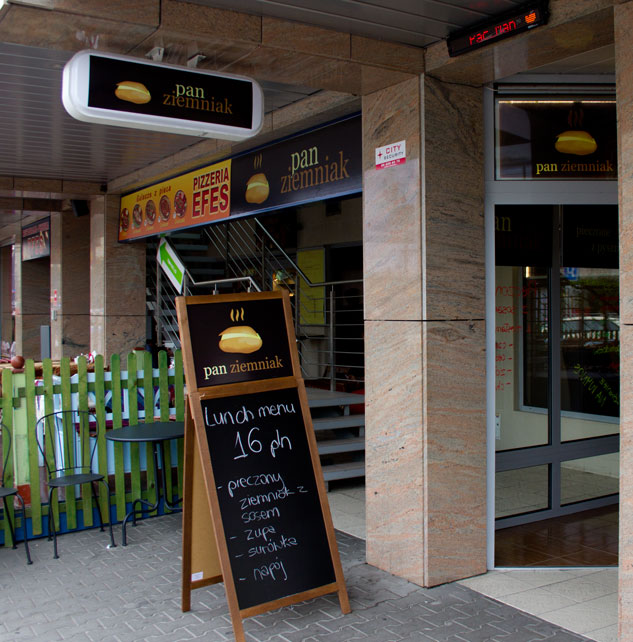 In one of the pavilions on Jana Pawła II new place has been opened dedicated to potatoes – Pan Ziemniak / Mr Potatoe. It serves baked potatoes with various extras. Among others there are potatoes with cottage cheese, flavoured butter, salmon with dill, bolognese sauce or baked beans. The menu is constantly changing and new dishes are appearing every day. Apart from potatoes Pan Ziemniak offers also few soups, also changed frequently. All dishes are also available to take away.