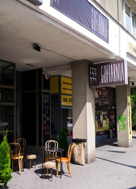 Gofiarnia a new small place with atmosphere on Goworka Street in Mokotów. It offers a view for PKO Polish Bank and waffles. In addition to waffles you can have here coffee and lemonade. The waffles made here are of the highest quality ingredients with seasonal additions from local suppliers. They come in a classic sweet option and savory – made from whole wheat. Additions vary depending on the season, but you can taste a classic waffle with whipped cream and raspberries, or savory waffle with salmon, capers and Balkan yogurt. Gofiarnia is very intimate, it only has a few tables, including three outside.